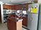 heladera, cocina, microondas y vajilla.